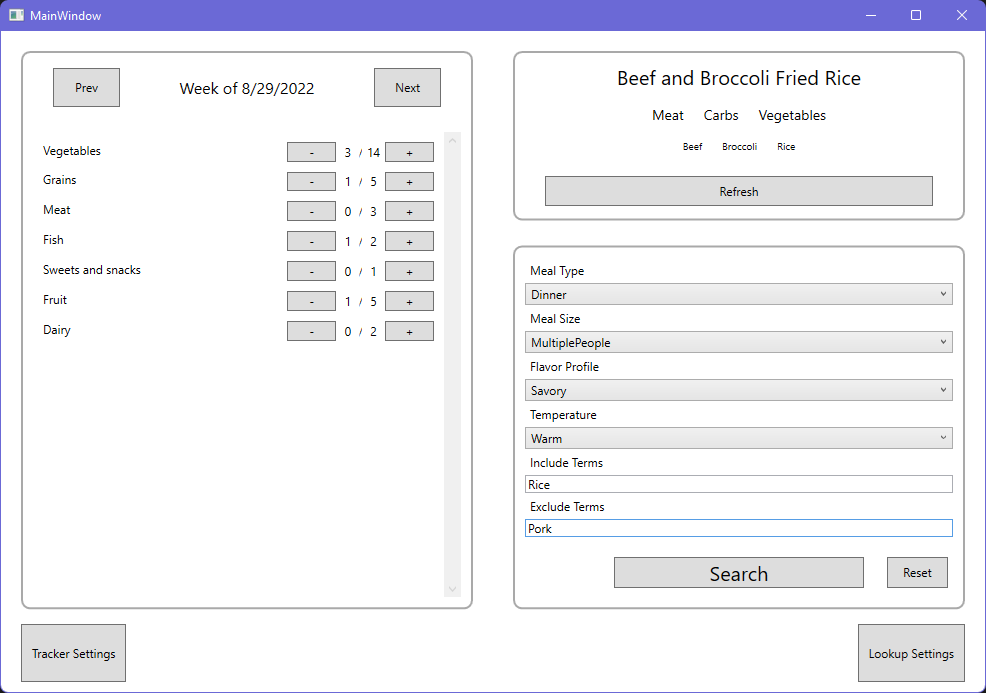 I made this planner because I wanted a tool that can track what I eat on a weekly basis while also letting me compile and filter my favorite recipes. None of the free software I tried seemed to work for me, so I just made my own.